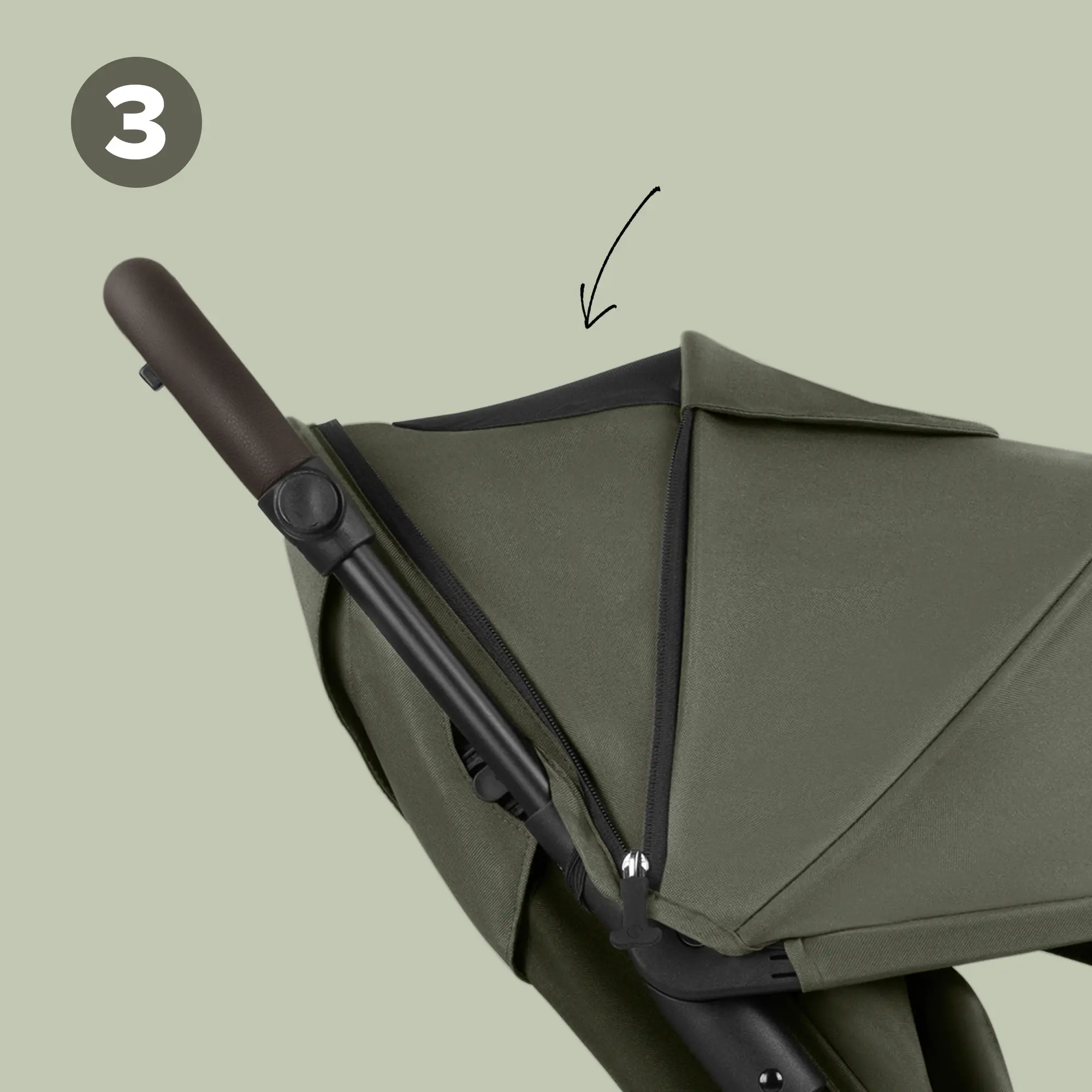 El Ping 3 Trekking cuenta con una ventana adicional en la capota parasol. La abertura queda visible cuando la capota está desplegada. Por un lado, esto te permite tener a tu mascota siempre a la vista. Por otro lado, proporciona ventilación adicional, especialmente en verano. La ventana se puede cerrar en cualquier momento con una cubierta de tela.