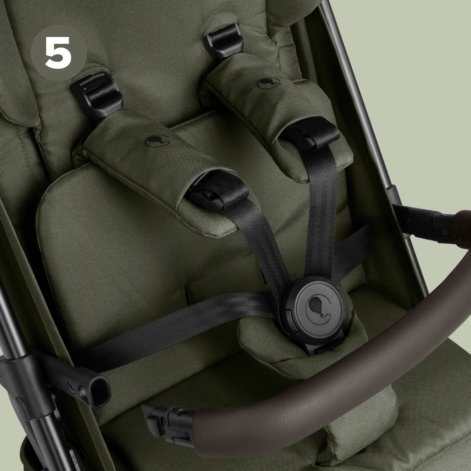 - Cinturón de seguridad confort HappyBelt® de 5 puntos con cierre magnético