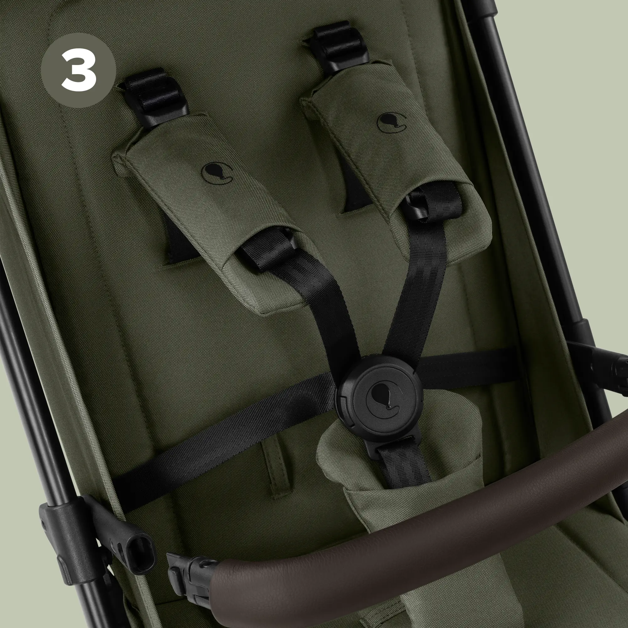 A partir de la colección 2025, el Ping 3 estará equipado con nuestro nuevo sistema de arnés de 5 puntos HappyBelt®. Esto hará que subir y bajar sea mucho más cómodo. Ahora puedes ajustar el cinturón de forma fácil y rápida. Todos los cinturones sobresalen ligeramente del asiento, por lo que sentarse es muy sencillo. El cierre del cinturón está provisto de un imán. Así, puedes cerrarlo de forma fácil y segura con una sola mano. En el Ping 2, abrocharse el cinturón era más complicado y siempre se necesitaban las dos manos.