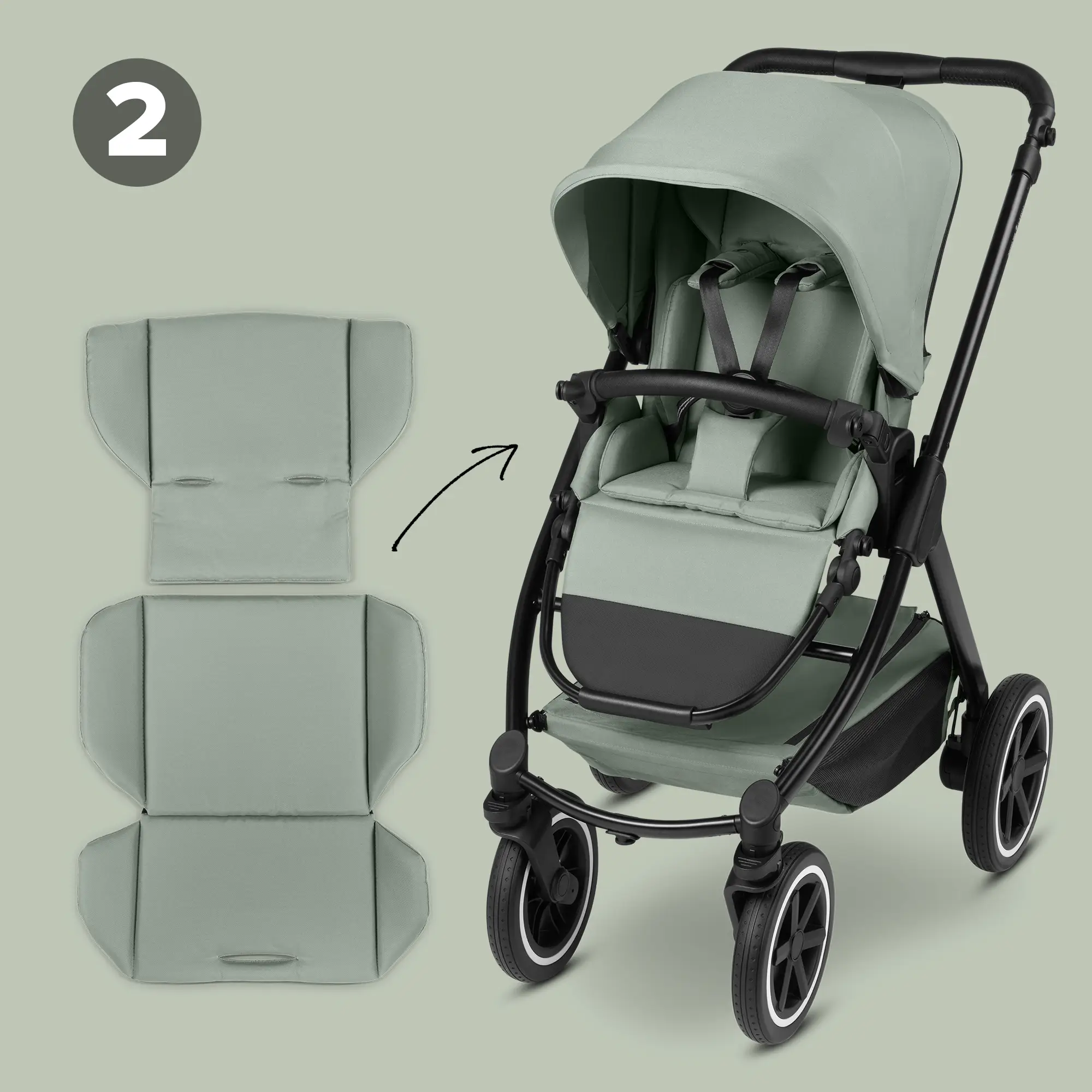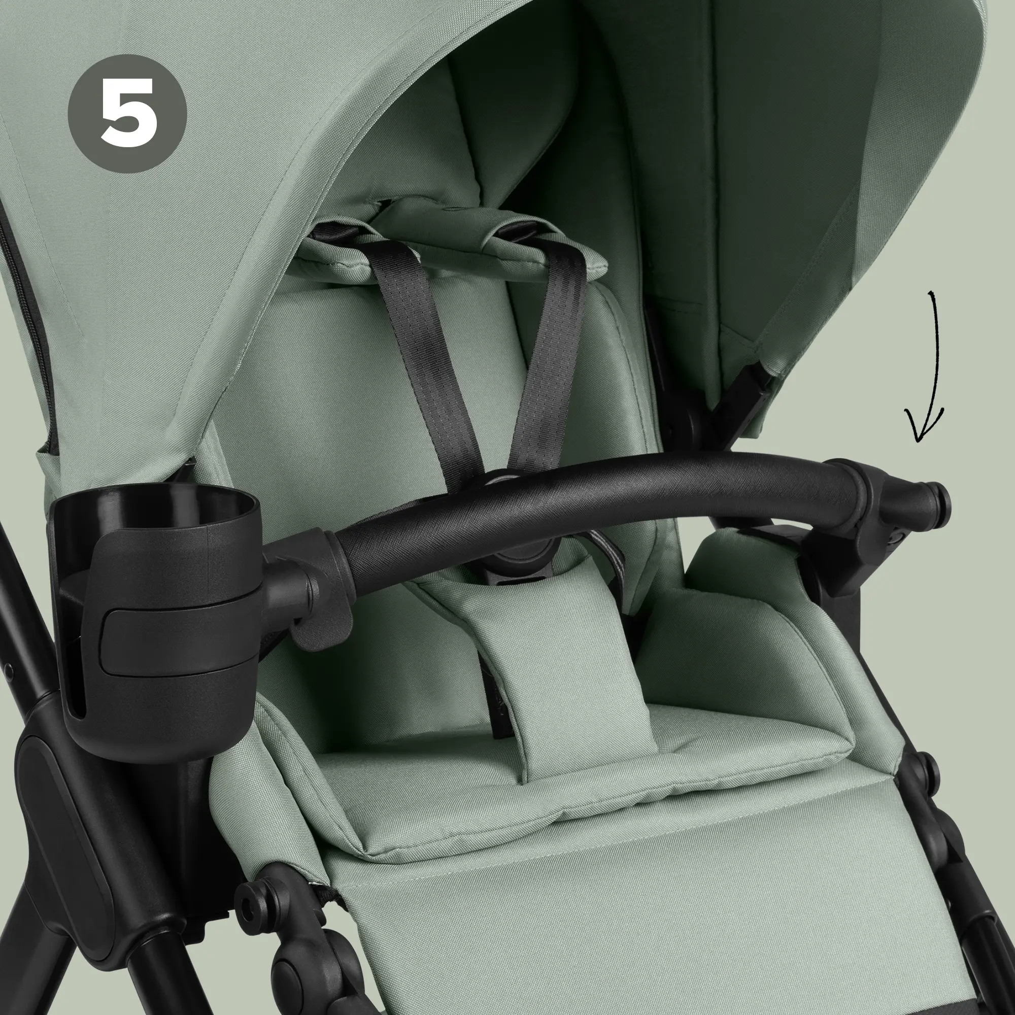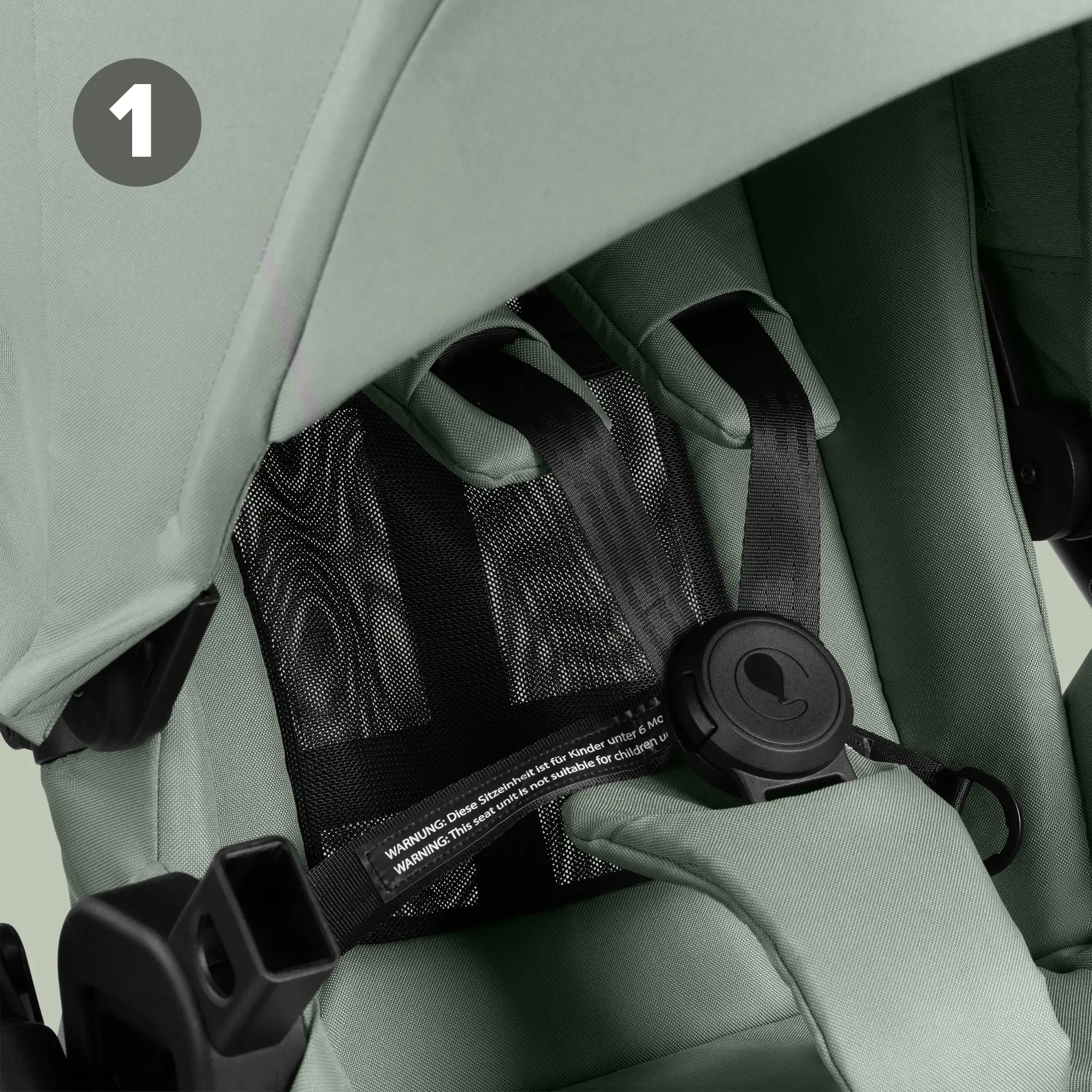 Ahora, mientras sostienes a tu bebé en brazos, puedes plegar cómodamente la capota del capazo hacia atrás con la otra mano. Para ello, basta con pulsar brevemente el botón de cada lado para desbloquear el ajuste de la capota. En el modelo anterior, había que pulsar los botones de desbloqueo al mismo tiempo, lo que no es posible con una sola mano. Esta mejora en la comodidad te encantará en el día a día.